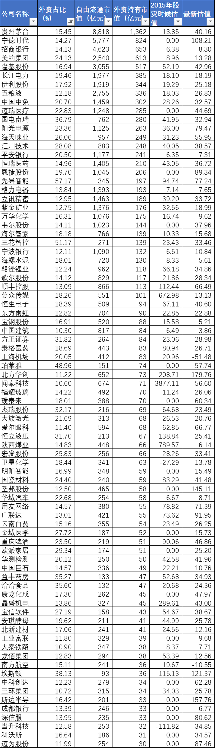 最后附一個外資持股比例(>10%)和持股市值規模較大(>30億元)的股票情況,現在有沒有跌到位,見仁見智了。