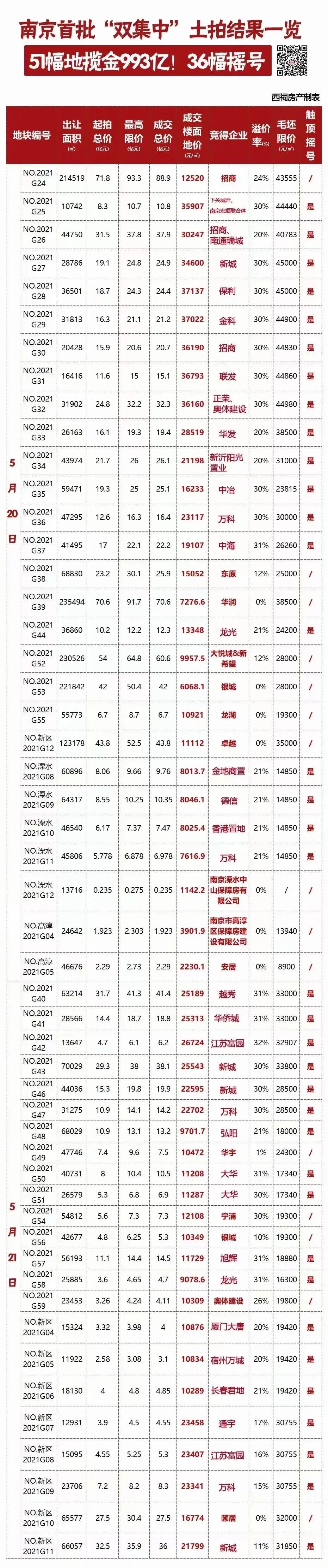 最終,土地成交總金額約993億元,其中36幅地塊觸頂搖號