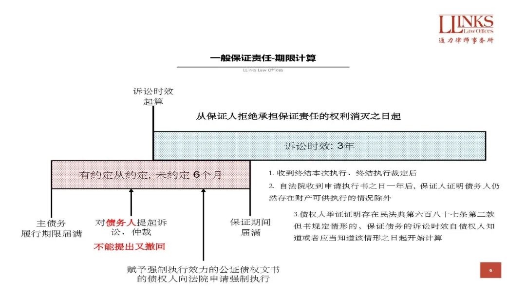 如果經常處理債權回收工作,你就會發現向債務人、保證人發函主張權利,不錯過保證期間和訴訟時效,也是工作的一部分,因此保證期限、訴訟時效的計算作為實現債權的前提,重要性不言而喻。考慮到相關規定比較繁瑣,我們特別以時間軸的方式為大家展現了一般保證和連帶保證責任的保證期間和訴訟時效計算規則。