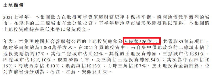 2021年,中梁控股其實有點猛,合計耗資526億元獲取了85個新項目,總建筑面積約1000萬平方米,已收購地塊(不含停車位)的平均成本約為每平方米5267元。