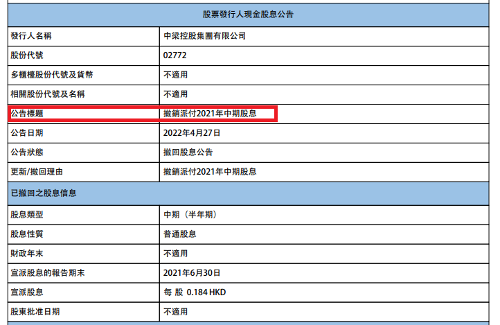 同時,杠桿地產注意到,中梁控股4月末發布公告,取消了2021年中期派息。