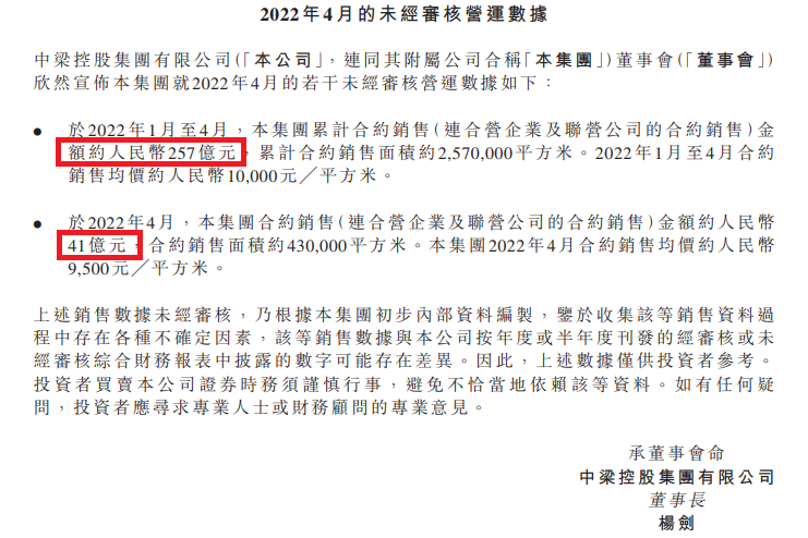而前4月合約銷售金額為257億元,單價約10000元/平米。