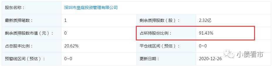 截至2020年末,皇庭國際的控股股東皇庭投資已質(zhì)押2.32億股公司股份,股權(quán)質(zhì)押率為91.43%,鄭康豪股權(quán)質(zhì)押率達52.69%,高質(zhì)押率背后隱藏著平倉風險。