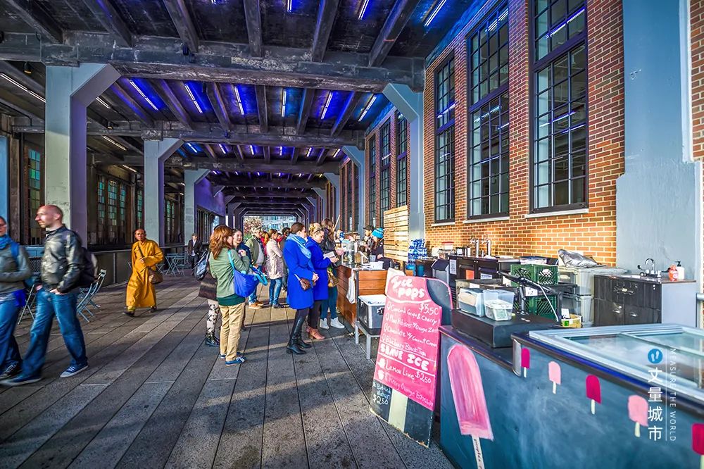 其次,將高線橋下的灰色空間,轉換為小商業、文化空間,增加收入來源。如高線公園酒店下部的灰色空間,更新后成為風格獨特的時尚餐飲區。