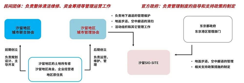 公私聯合,統一方向:汐留SIO-SITE所屬的東京港區管理部門,在開發前期,以「輕參與重引導」的方式參與其中。