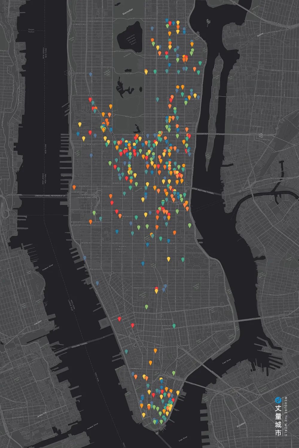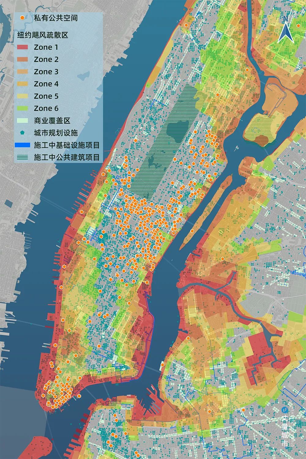 ▼ 紐約中心城區小型公共空間分布示意
