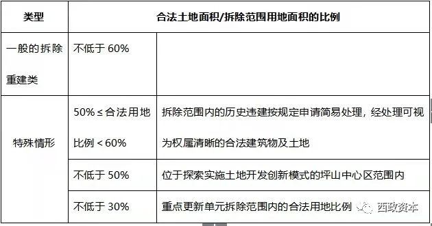 在規(guī)劃層面判斷項(xiàng)目的可行性之后,項(xiàng)目本體的情況成為了第二個(gè)重點(diǎn)關(guān)注對(duì)象,比如擬申報(bào)更新的用地范圍內(nèi),如果五類地對(duì)應(yīng)的合法用地面積無法達(dá)到60%,而且也無法通過非農(nóng)、征返指標(biāo)調(diào)入或飛地等方式解決,那項(xiàng)目連更新立項(xiàng)的條件都無法達(dá)到。