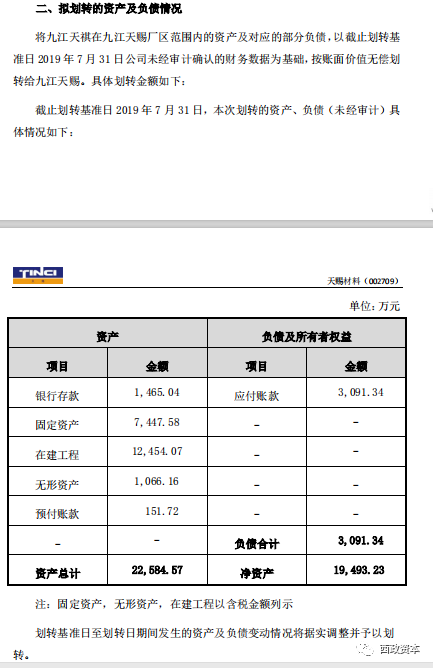 從該公告內容獲悉,九江天賜高新材料有限公司(以下簡稱“九江天賜”是廣州天賜高新材料股份有限公司全資子公司,九江天祺氟硅新材料科技有限公司(以下簡稱“九江天祺”)是九江天賜全資子公司。為了推動公司業務結構梳理,提升公司運營效率和管理水平,結合公司未來發展規劃的目的,九江天祺(轉讓方)把名下部分資產無償劃轉給九江天賜(受讓方),劃轉資產情況如下: