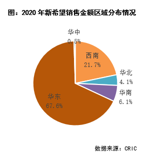 新希望地產(chǎn)銷售規(guī)模的增長(zhǎng),一方面得益于其城市深耕、區(qū)域聚焦策略。2020年銷售業(yè)績(jī)的接近90%來源于華東和西南的9個(gè)城市,城市深耕策略顯著,其中,杭州、南京、溫州、成都4城的銷售金額貢獻(xiàn)超過100億元以上。截至2020年底,新希望地產(chǎn)在售項(xiàng)目主要集中在15個(gè)高能級(jí)城市中,主要分布在長(zhǎng)三角城市群、西南核心城市和粵港澳大灣區(qū)三大核心城市群,這些城市普遍市政配套較為完善、居民擁有較強(qiáng)的購(gòu)買力,使得抗風(fēng)險(xiǎn)能力較強(qiáng),為新希望貢獻(xiàn)穩(wěn)定的銷售。