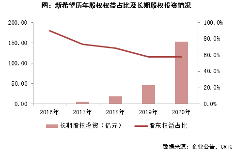 另一方面,銷售的增長(zhǎng)還得益于新希望地產(chǎn)自2018年以來在拿地方面比較積極,且持續(xù)加大與其他房企的合作。2020年新希望地產(chǎn)新增土地總價(jià)的73%都在二線城市,在蘇州、南京、杭州等城市積極補(bǔ)充土儲(chǔ)。與此同時(shí),新希望地產(chǎn)的合作力度持續(xù)較大,與萬科、融創(chuàng)、保利、融信等大型房企,建立了長(zhǎng)期的合作關(guān)系,可以通過多元合作拿地從而實(shí)現(xiàn)風(fēng)險(xiǎn)分散,同時(shí)學(xué)習(xí)這些大型房企的產(chǎn)品打造及運(yùn)營(yíng)管理經(jīng)驗(yàn),2020年新希望銷售金額權(quán)益比為52%。同時(shí)可以看到,2020年新希望的長(zhǎng)期股權(quán)投資152.92億元,同比增長(zhǎng)233.0%,四年復(fù)合增長(zhǎng)率達(dá)到191%,通過合作開發(fā),在降低拿地風(fēng)險(xiǎn)的同時(shí),也促進(jìn)新希望地產(chǎn)銷售規(guī)模實(shí)現(xiàn)較大的飛躍。