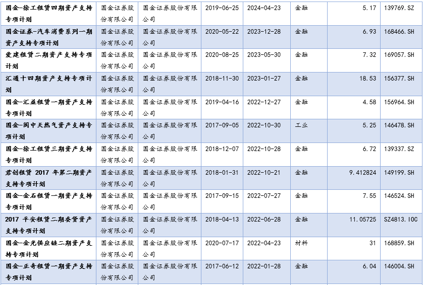 由國金證券作為管理人發(fā)行的企業(yè)ABS現(xiàn)存續(xù)的共有33單