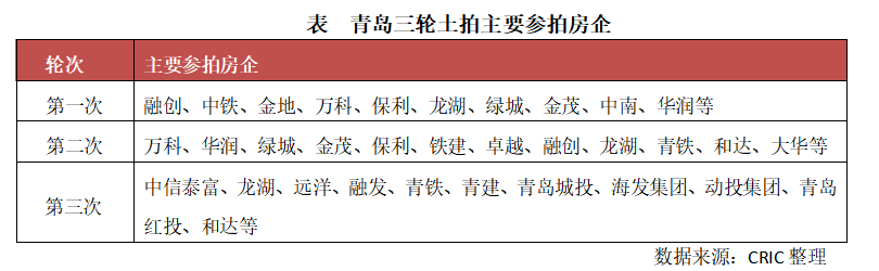品牌房企均為聯合拿地,青島三輪土拍熱度延續低位