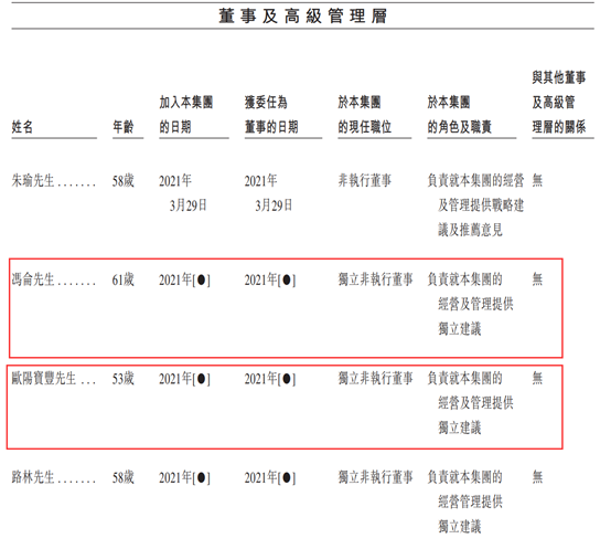 深厚的緣分也體現在招股書里。中億基業管理層架構顯示,馮侖先生目前為該司獨立非執行董事,負責就本集團的經營及管理提供獨立建議。