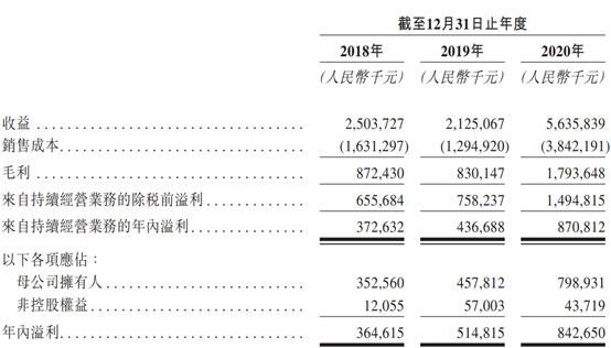 凈利潤增幅較大,從2018年的3.65億元到2020年的8.43億元,最近兩年增幅達41.19%、63.68%。