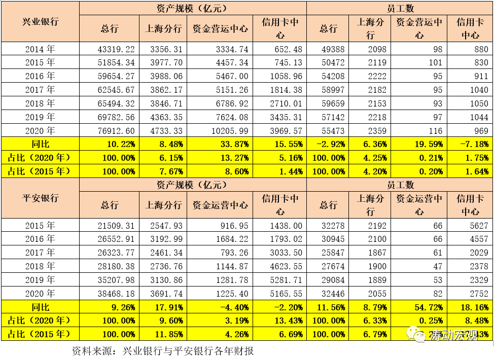 興業銀行和平安銀行的資金營運中心分別成立于2013年與2015年(均在上海),兩家銀行的信用卡中心則分別成立于上海與深圳,具體一定參考價值。