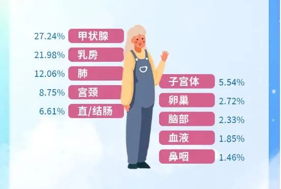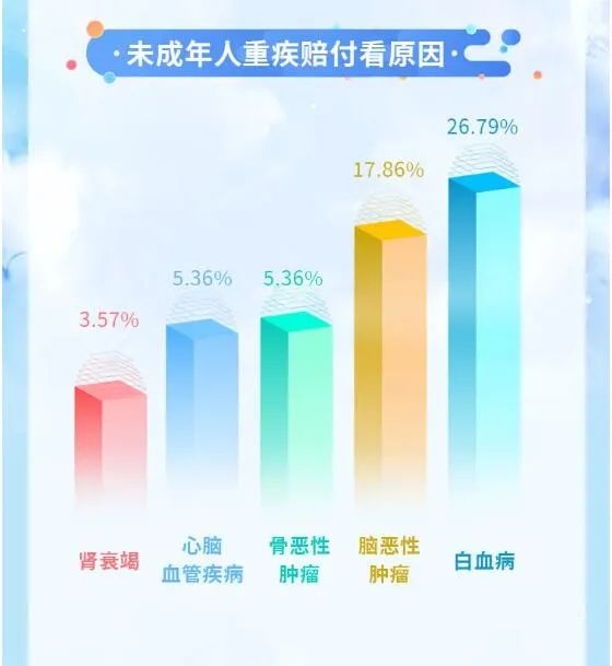 從男性和女性患惡性腫瘤的部位看,甲狀腺癌已成為成年人群體占比排名“數(shù)一數(shù)二”的惡性病。在未成年人重疾賠付原因中,白血病以26.79%的比例高居榜首。