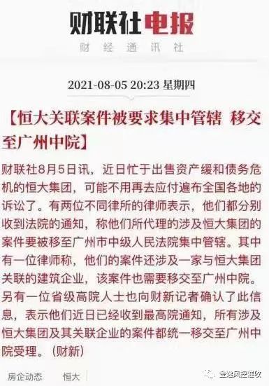 債務(wù)人的還款方式主要分三種:第一種是掙錢還款,第二種是借錢還債,有的人就是拆東墻補(bǔ)西墻,現(xiàn)在很多的人拆東墻補(bǔ)西墻都做不到了,借不到錢。第三種是賣資產(chǎn),通過賣掉自己的股份,房子,車子等等,通過賣資產(chǎn)去還這個(gè)錢。比如說大家都知道的今年蘇寧開始暴發(fā)債務(wù)危機(jī),首先就是它主業(yè)賺不到錢,財(cái)報(bào)上顯示2012年到現(xiàn)在9年時(shí)間,蘇寧易購包括線上店都在虧本,主業(yè)賺不到錢,其次它也借不到錢,去年問阿里巴巴借了十個(gè)億,上千億的盤子借十個(gè)億有什么用,付利息都不夠。前兩步都不行以后,最后就是賣資產(chǎn)。首先賣足球隊(duì),蘇寧足球隊(duì)還欠員工的工資,去年還拿了一個(gè)中超的冠軍,拿了冠軍以后馬上就搞不下去了,就賣掉成了一個(gè)笑話,足球隊(duì)也沒有人要不得不解散,最后還是深圳國資委接盤買了點(diǎn)股份。現(xiàn)在恒大也出現(xiàn)債務(wù)危機(jī),房地產(chǎn)這幾年特別是在四五線城市的收益都是比較差的,賺不到什么錢,它已經(jīng)是上萬億的負(fù)債,現(xiàn)在要降負(fù)債,把負(fù)債降到五千億之內(nèi),現(xiàn)在到期的債權(quán)要還,只有打折賣資產(chǎn)還。所以恒大就急于賣房子,我一個(gè)新疆客戶6月底買了恒大的房子,買了兩層,打折的力度都到五折了。原來一萬塊一個(gè)平方,現(xiàn)在五千就賣,通過這樣快速回款,不然到期債務(wù)還不出的話,人家就要起訴它了。現(xiàn)在恒大官司已經(jīng)陸陸續(xù)續(xù)的爆發(fā)了,前一段時(shí)間是宜興一個(gè)銀行和他們打官司,現(xiàn)在又是廣告費(fèi)打官司,前陣子最高院還出了一個(gè)文件,就是恒大所有的官司必須移交到廣州中院統(tǒng)一裁定,現(xiàn)在全國債主都要起訴他了,都來不及處置和分財(cái)產(chǎn),所以發(fā)了一個(gè)文要移送到廣州中院。