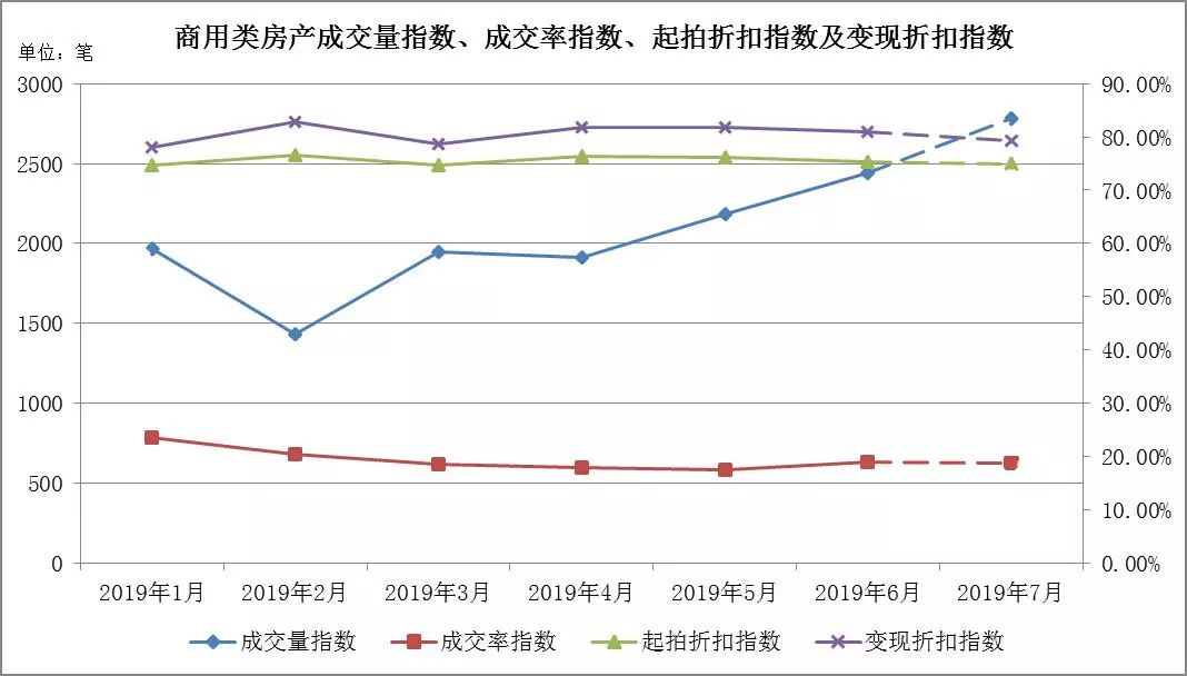 (一) 商用類房產(chǎn):成交量持續(xù)上升,成交率小幅增長(zhǎng),起拍折扣指數(shù)、變現(xiàn)折扣指數(shù)保持平穩(wěn)