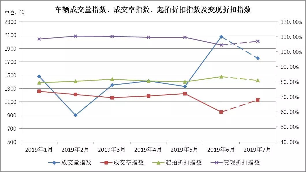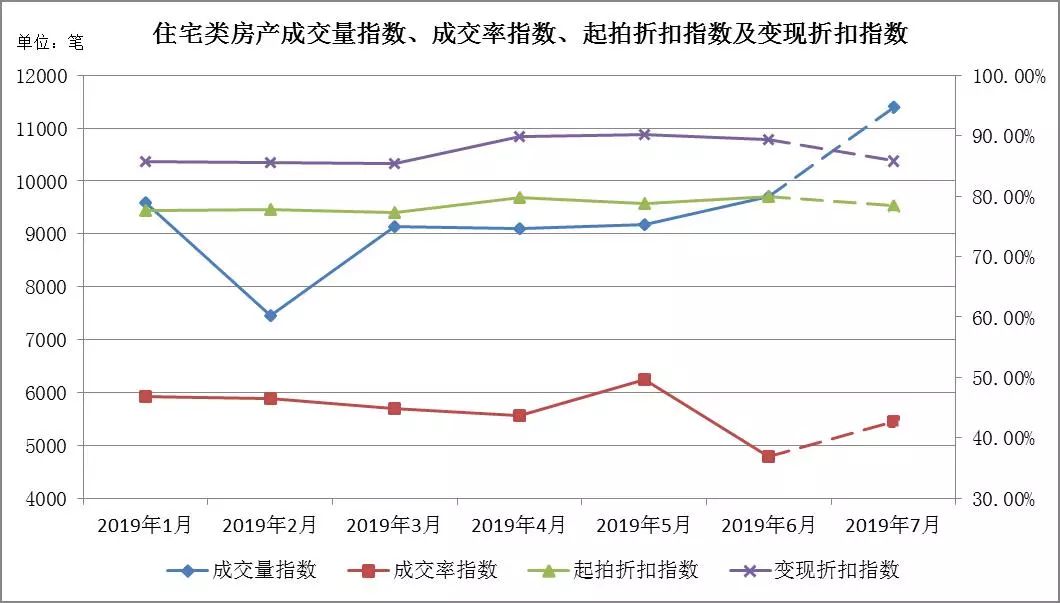 七月預(yù)測(cè):成交量在1601至1903筆左右,成交率指數(shù)區(qū)間[66.55%,69.03%],起拍折扣指數(shù)區(qū)間[80.21%,81.40%],變現(xiàn)折扣指數(shù)區(qū)間[105.97%,107.79%]。