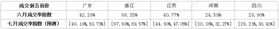 (二) 成交率指數(shù):前五省成交率均明顯下降