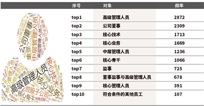 不少企業對于激勵多少員工,激勵什么職級的員工難以把握。在美國,3%的企業只對核心層(包括董事長和首席執行官)和主要經營管理人員(副總裁、財務總監)實行管理層激勵方案;22%的企業只對頂尖的管理層實施管理層激勵方案;42%的企業對公司的中上管理層實施管理層激勵方案,只有3%的企業對所有的雇員實施管理層激勵方案 ②。而根據中倫律師事務所《公司股權激勵研究報告》,其對于激勵對象進行如下畫像并選出他們之中的TOP 10: