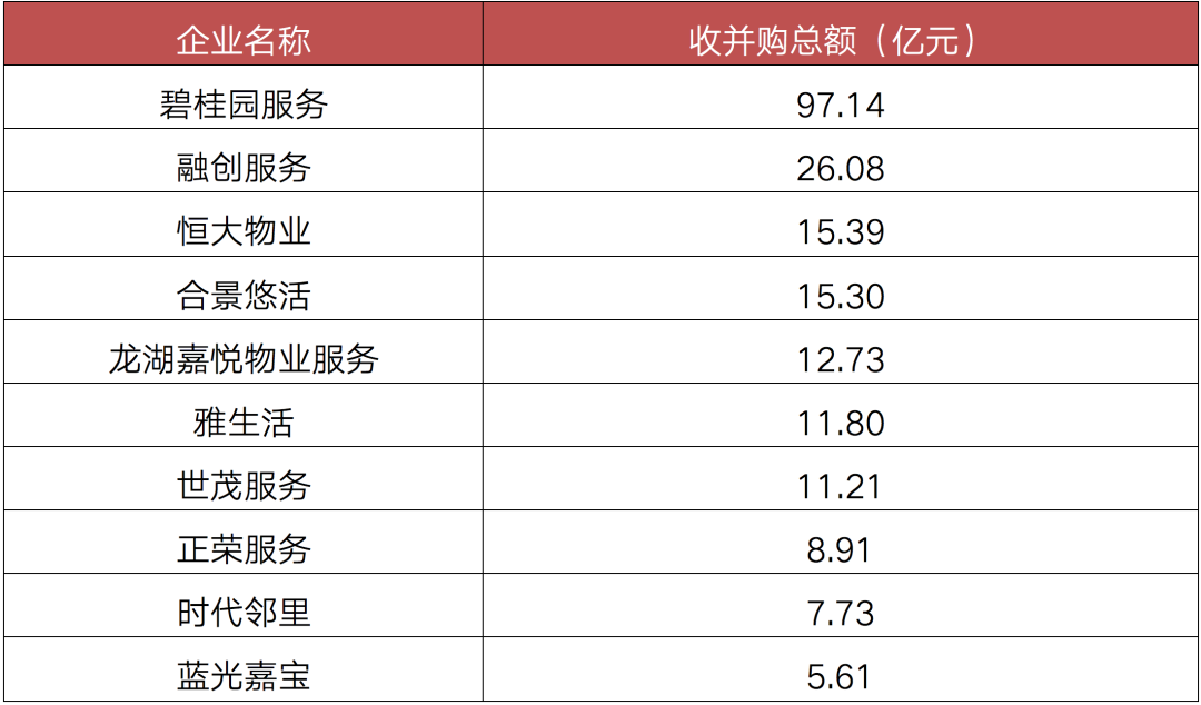 表:2020年至今物管企業(yè)收并購總額TOP10