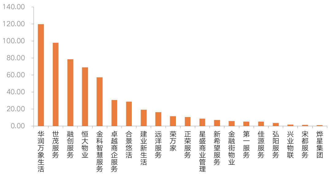 2020年以來,新登陸港交所的物業(yè)服務(wù)企業(yè)達(dá)到21家,當(dāng)中包括恒大物業(yè)、融創(chuàng)服務(wù)、世茂服務(wù)以及華潤萬象生活等規(guī)模較大的物企,這些企業(yè)的IPO所得凈額都超過了60億港元,其中華潤萬象生活更是超過了120億港元。