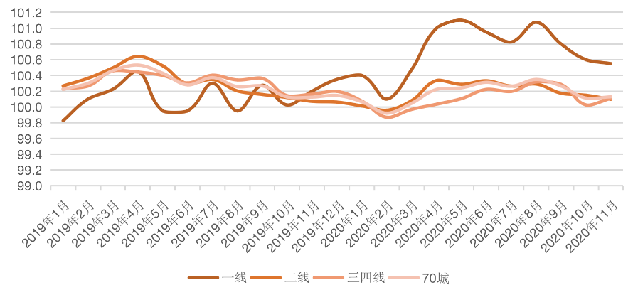 近期,國家統(tǒng)計局發(fā)布了2020年11月份70個大中城市商品住宅銷售價格變動情況。