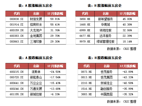 在A股房企方面,本月財(cái)信發(fā)展的漲幅較大,企業(yè)股價(jià)從12月8日開(kāi)始就穩(wěn)定上漲,但是到22日開(kāi)始有所回調(diào),最終整月漲幅達(dá)到了59.91%,使其成為A股漲幅最大的房企。