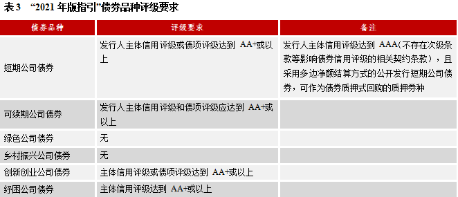 (三) “2021年版指引”債券品種評級要求