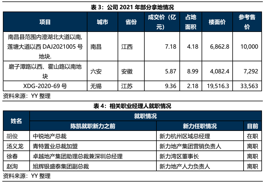 2020年公司管理層發生較大變動,3月份明星職業經理人陳凱加入新力任聯席董事長兼總裁,5月份公司原執行董事兼副總裁佘潤廷先生辭任,同年10月陳凱辭任。