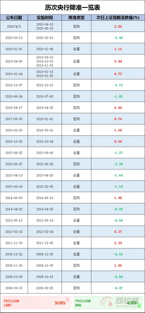 2,今年以來部分大宗商品價格持續(xù)上漲,在此背景下,上游對中下游企業(yè)利潤擠占明顯,中小微企業(yè)壓力較大,成本明顯上升,需要降低融資成本緩解壓力。3,聽機構(gòu)的人說,觀察到疫情后,居民的預防性儲蓄偏高,消費持續(xù)不及預期,內(nèi)需指標的恢復進程可能會因PPI上升而放慢步伐。國內(nèi)經(jīng)濟雖然穩(wěn)了,但消費拉不起來,經(jīng)濟基本面就強不起來。4,降準的另一頭是怕通脹,但這個問題目前來看還好。一方面國內(nèi)通脹水平整體可控,也算是為降準打開空間;另一方面,大家也感覺到目前政策的重心是在經(jīng)濟恢復、穩(wěn)增長,優(yōu)先級重要于防通脹。備注,通脹水平可控,可參考6月CPI與PPI,漲幅均回落了:其中CPI同比上漲1.1%,前值上漲1.3%,漲幅較上月回落0.2個百分點,為今年以來首次回落;PPI同比上漲8.8%,前值上漲9%,漲幅回落0.2個百分點。5,M2與社融基本上已回歸至2019年的常態(tài)水平,實體經(jīng)濟依然感覺流動性不足,需要政策層面給予呵護。6,再有就是從銀行層面看,通過釋放銀行被凍結(jié)的準備金,也相當于降低了銀行們的資金成本,在配合存款報價機制改革的同時,能推動銀行們以更低的資金支持中小微企業(yè)。我們小老百姓關心得最多的,無非樓市、股市、債市。再者“愉見財經(jīng)”是寫銀行的公眾號,那也看看對銀行業(yè)而言是否利好(這或也關于銀行股走勢,是吧?)對樓市,“愉見財經(jīng)”覺得與其盯著市場資金面,不如直接看信貸政策,來得更單刀直入。那么遺憾的是,盡管資金面上頭有好消息,但信貸政策沒有啊。準備金率一低,是可以釋放出資金,但我不認為最懂政治的銀行們敢把這錢搞到房地產(chǎn)類貸款里,“兩道紅線”還是矗在那里巋然不動的好伐。不信你們看,很多地區(qū)的二手房還是停貸中啊。再者,就是上頭希望的是銀行們對實體經(jīng)濟、小微企業(yè)那么持續(xù)保持低貸款成本,降的是那頭。房地產(chǎn)類貸款,包括按揭在內(nèi),大概率不會有啥明顯受惠,上頭對樓市的高壓口徑可是一點沒有放松的。所以我的感覺是,對樓市而言,降個準,不算什么大利好。對股市,是有提振信心作用的,至少大家不會擔心貨幣政策收緊了,但究竟有作用多大,其實有限,肯定不如對債市那么立竿見影。畢竟只是個降準而不是降息,更多影響的是銀行體系內(nèi)價格調(diào)整的問題。我每次降準后寫稿,都要擼一遍歷次降準后第一個交易日我大A是漲是跌,你們看完下表就會了然,其實漲跌概率對半。所以真心難預測啊,我個人也不認為A股的震蕩期就此結(jié)束。