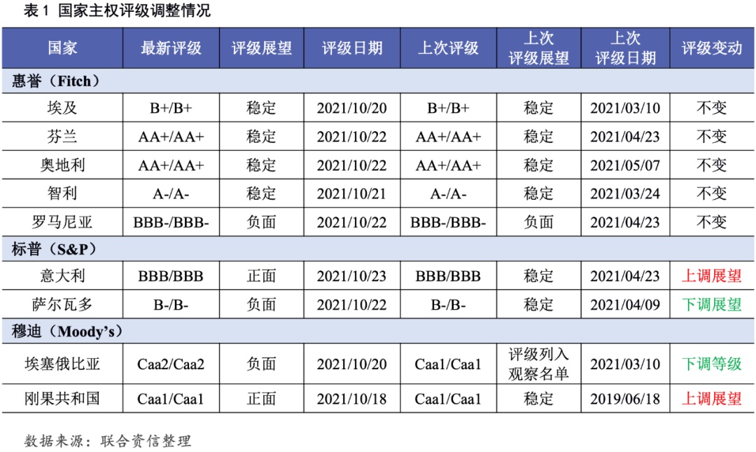 10月23日,標(biāo)普維持意大利長期本、外幣主權(quán)信用級(jí)別為“BBB”不變,評(píng)級(jí)展望由“穩(wěn)定”上調(diào)至“正面”。標(biāo)普認(rèn)為,德拉吉政府當(dāng)前在意大利議院中占據(jù)多數(shù)席位的優(yōu)勢(shì)將確保“國家恢復(fù)和復(fù)原計(jì)劃”(PNRR)計(jì)劃在2021年底之前都能順利推進(jìn),PNRR的實(shí)施將有助于意大利經(jīng)濟(jì)的增長緩和其財(cái)政的整頓。標(biāo)普同時(shí)也提到,意大利國內(nèi)已經(jīng)實(shí)現(xiàn)了80%的疫情接種率,疊加其已經(jīng)收到第一筆復(fù)蘇基金;在此基礎(chǔ)上,意大利將在2021年和2022年實(shí)現(xiàn)經(jīng)濟(jì)的快速復(fù)蘇,GDP增幅將提前1年恢復(fù)至2019年的水平。疫苗接種率的提高、私人儲(chǔ)蓄的增加、商業(yè)和家庭信心的增加、歐盟復(fù)蘇基金的到位和旅游業(yè)的逐步恢復(fù)都將驅(qū)動(dòng)未來意大利經(jīng)濟(jì)的穩(wěn)步上揚(yáng)。因此,標(biāo)普上調(diào)意大利評(píng)級(jí)展望至“正面”。