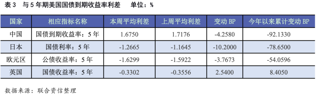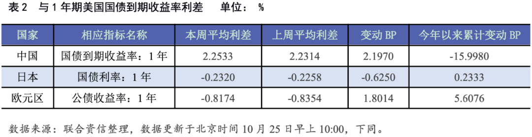 各期美債收益率全面上漲,各主要經(jīng)濟(jì)體國債與美債收益率利差走勢(shì)不一