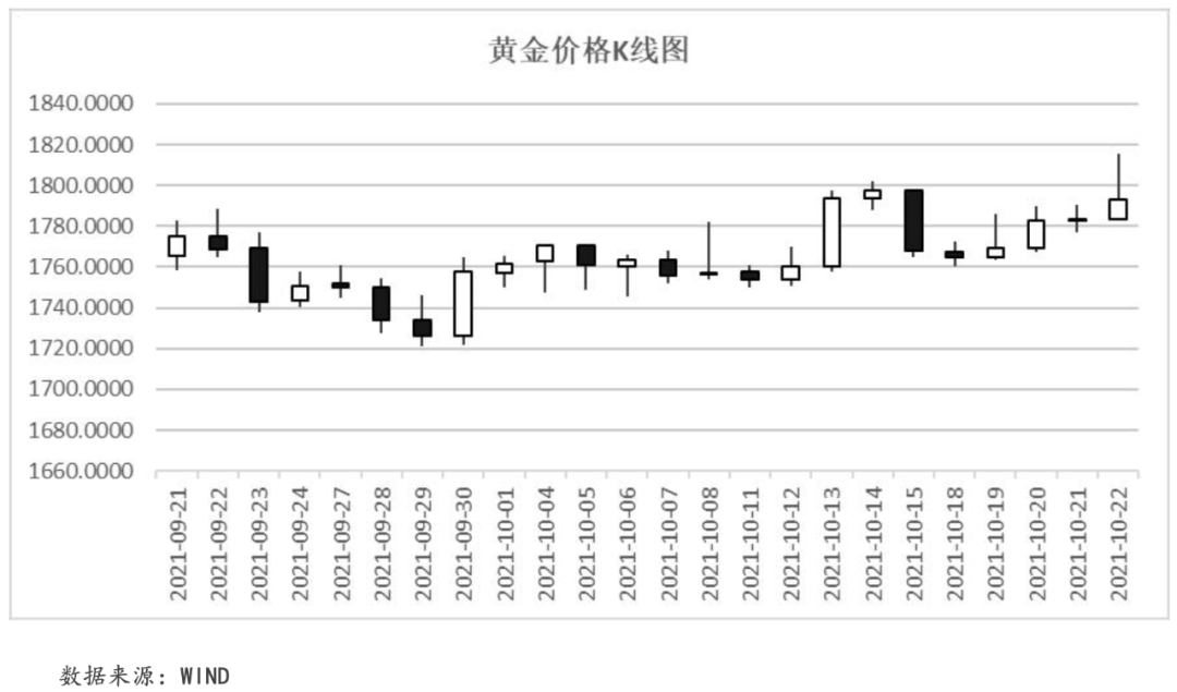 本周,美國“褐皮書”的公布顯示出,美國經(jīng)濟(jì)增速有所放緩的同時(shí),通脹問題日益嚴(yán)峻。供應(yīng)鏈的中斷、原材料價(jià)格上漲、能源價(jià)格上漲和勞動(dòng)力的恢復(fù)緩慢都讓人們意識(shí)到這些共同助推高通脹的因素在短期內(nèi)并不能有所改善。高通脹的持續(xù)拉升了市場(chǎng)避險(xiǎn)情緒,黃金作為抗通脹的主要避險(xiǎn)工具,因此金價(jià)走高。截至本周五,COMEX黃金價(jià)格收于1,793.10美元/盎司,周內(nèi)累計(jì)收漲1.45%,連續(xù)第二周上漲。
