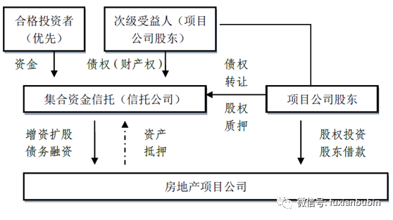 3.股加債模式是信托機(jī)構(gòu)發(fā)行集合資金信托計(jì)劃募集資金,信托資金部分用于向房地產(chǎn)項(xiàng)目公司增資(或受讓原股東股權(quán)),其余信托資金向房地產(chǎn)項(xiàng)目公司發(fā)放貸款或受讓原股東股權(quán),資金使用方到期還本付息和信托公司轉(zhuǎn)讓股權(quán)實(shí)現(xiàn)信托資金退出。