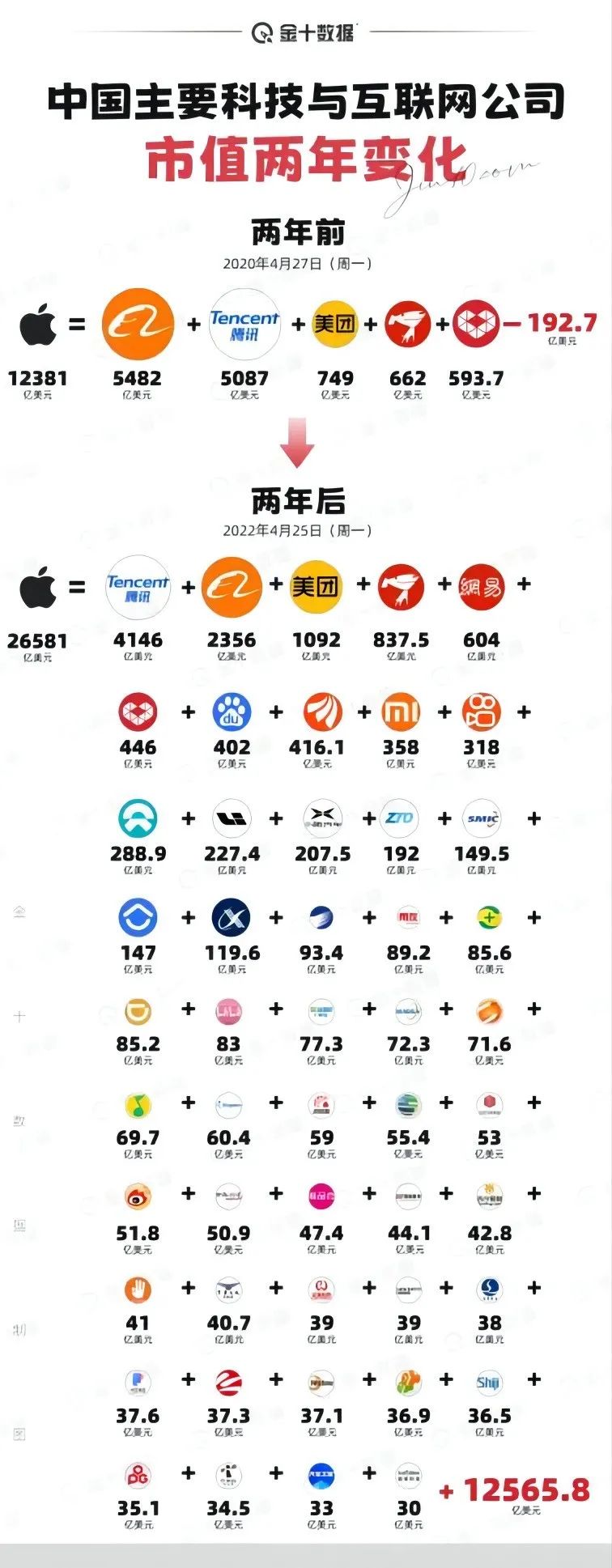 一張是中國主要科技與互聯網公司的兩年來的市值對比;
