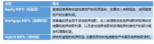 美國(guó)市場(chǎng)主要有Equity REITs(權(quán)益型)、Mortgage REITs(抵押權(quán)型)和Hybrid REITs(混合型)三種基本形態(tài),上市REITs主要以Equity REITs為主。