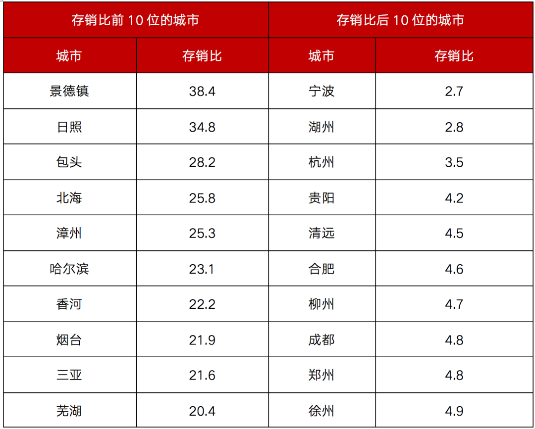 從庫存來看,哈爾濱全國百城庫存去化周期也位于低位,從住宅成交走勢來看,哈爾濱住宅成交量出現了連續4個月的下滑,克而瑞數據顯示,截至10月底,哈爾濱市商品住宅去庫存周期達到23.1個月,新房存銷比在克而瑞重點監測的一百個城市中排名第6,僅低于景德鎮、日照、包頭、北海和漳州。