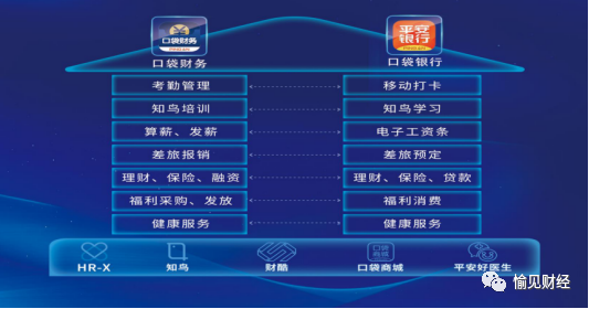 但平安銀行改了一套思維,他們基于傳統的代發工資業務衍生出面向廣大企業及員工的泛金融、泛工作、泛生活的全新智能綜合服務平臺:“平安薪”。除了工資發放,“平安薪”平臺還同步配套理財、保險、貸款、HR-X考勤/算薪服務、知鳥培訓服務、因公差旅服務、商城福利服務、好醫生健康服務等多種增值服務。