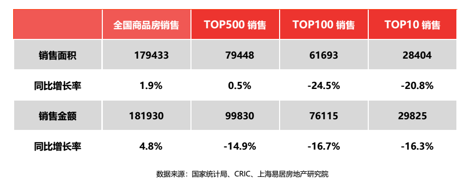具體到頭部房企,萬科、碧桂園、融創、新城、新城等銷售規模均同比下跌,TOP10房企全年銷售額同比下降了16.3%。