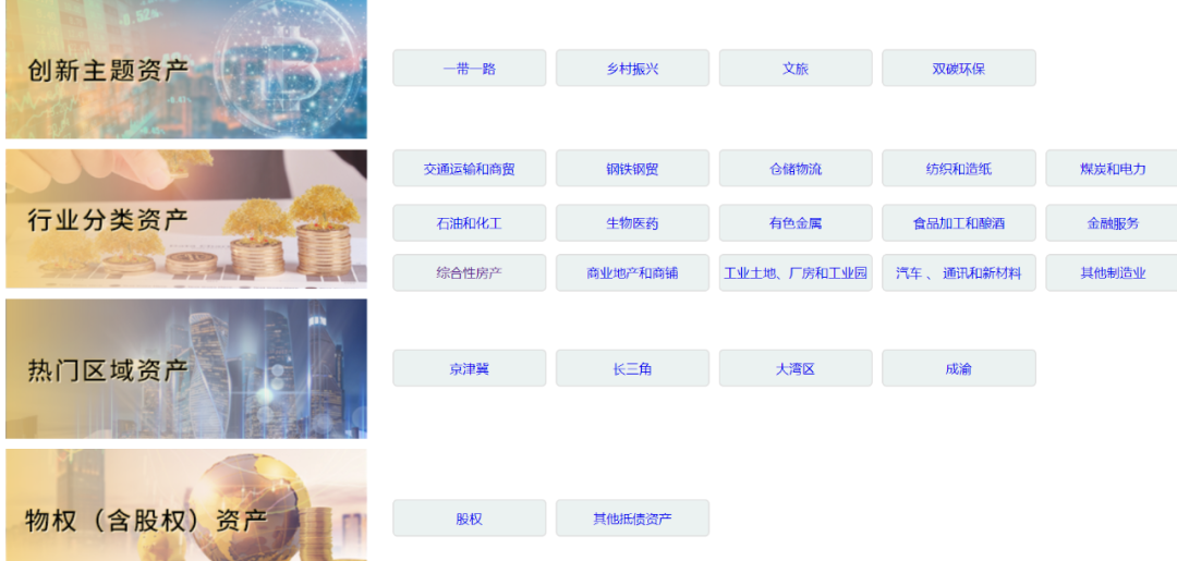 鳳凰網(wǎng)風(fēng)財(cái)訊發(fā)現(xiàn),針對(duì)這一輪2000億資產(chǎn)的集中推介,長(zhǎng)城資產(chǎn)將其按照不同區(qū)域、行業(yè)、主題進(jìn)行展示。