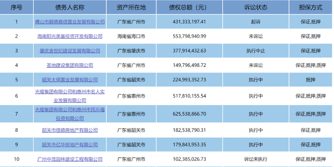 據(jù)風(fēng)財(cái)訊統(tǒng)計(jì),長(zhǎng)城資產(chǎn)此次推介的房產(chǎn)類資產(chǎn),債權(quán)總額近750億元,占比超37%。其中包含光耀集團(tuán)、卓達(dá)集團(tuán)、信德集團(tuán)等多家知名房企的項(xiàng)目。