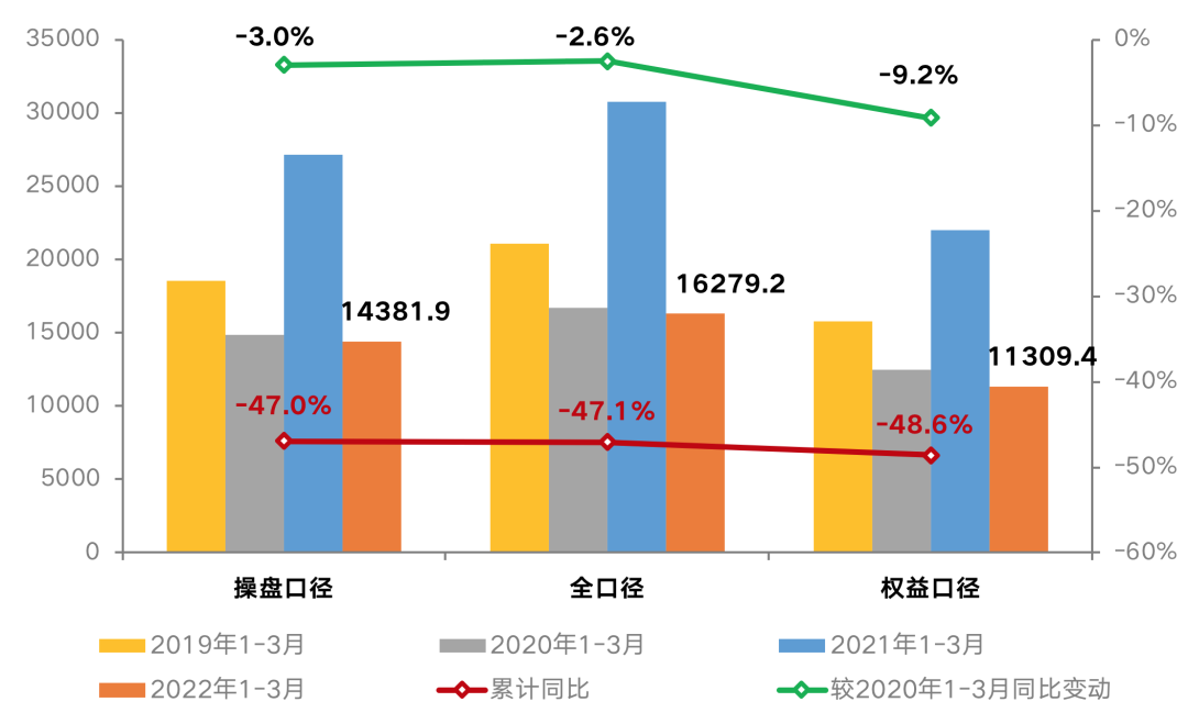 CRIC數(shù)據(jù)顯示,一季度,百強房企操盤金額為14381.9億元,同比大降47%,全口徑銷售金額為16279.2億元,同比降幅也達到了47.1%,業(yè)績表現(xiàn)不及2020年的同期水平。