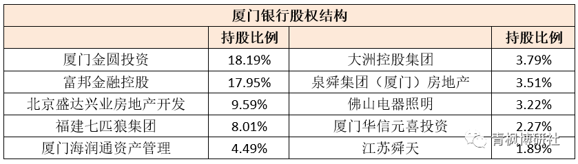 (一)廈門(mén)銀行:第一大股東由廈門(mén)市財(cái)政局變更為廈門(mén)金圓投資集團(tuán)