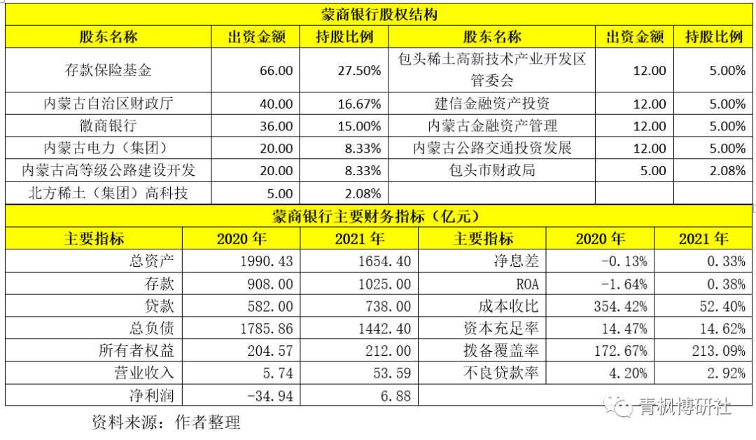 (一)蒙商銀行:取代包商銀行,2021年底總資產(chǎn)縮表至1654億元