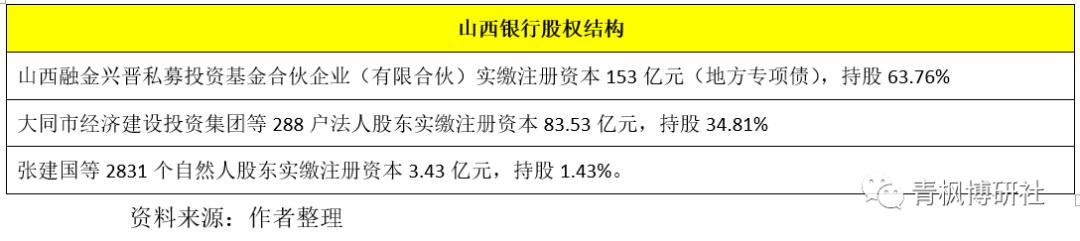 2、山西銀行的注冊(cè)資本達(dá)到239.96億(山西發(fā)行的153億元地方專項(xiàng)債便是為了注資山西銀行),原晉商銀行副行長(zhǎng)高計(jì)亮任山西銀行董事長(zhǎng)。