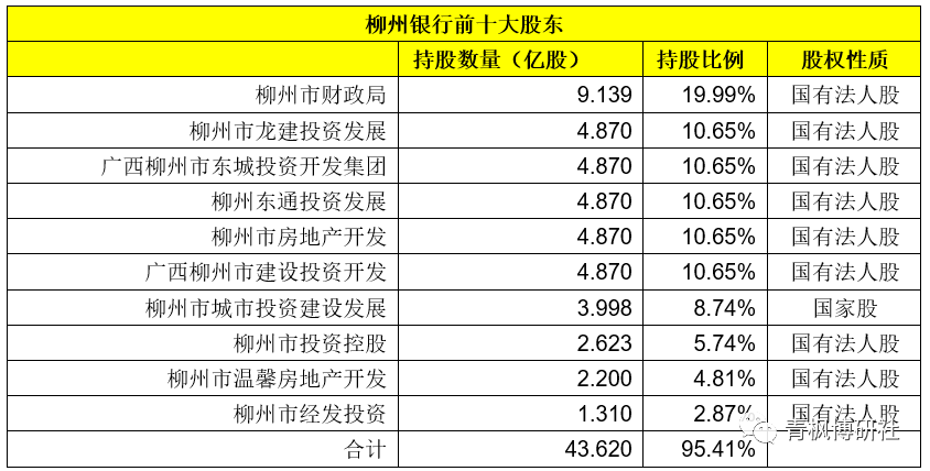 (九)柳州銀行:柳州財(cái)政局入主第一大股東,當(dāng)?shù)貒?guó)資持股95%以上