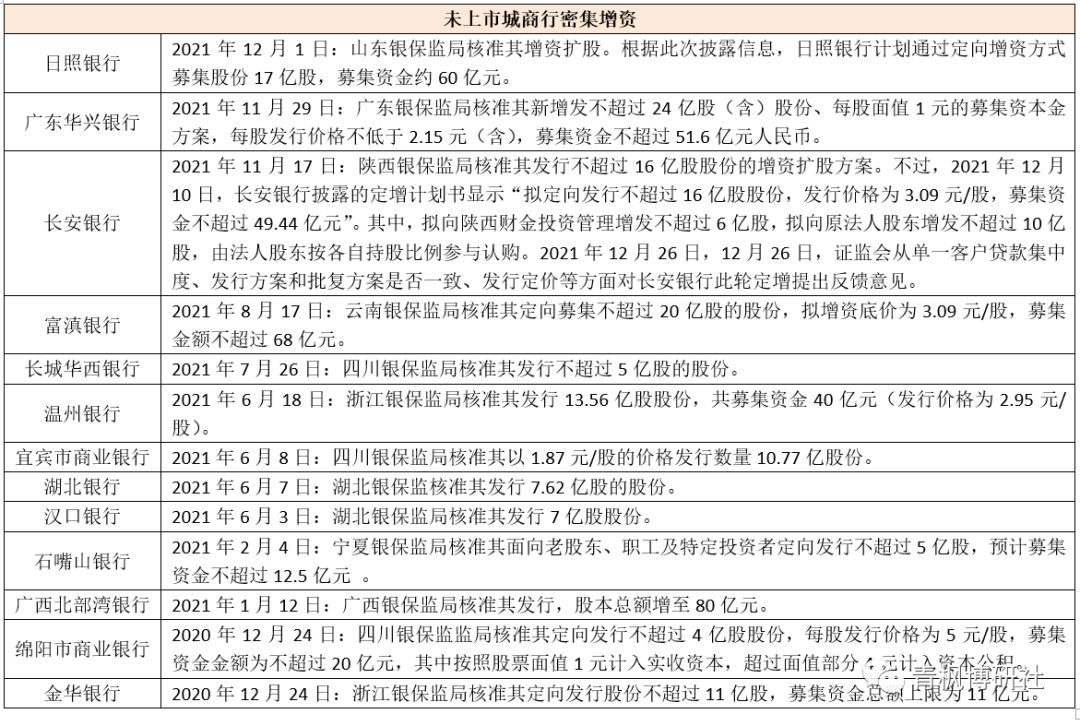 五、未上市城商行密集增資