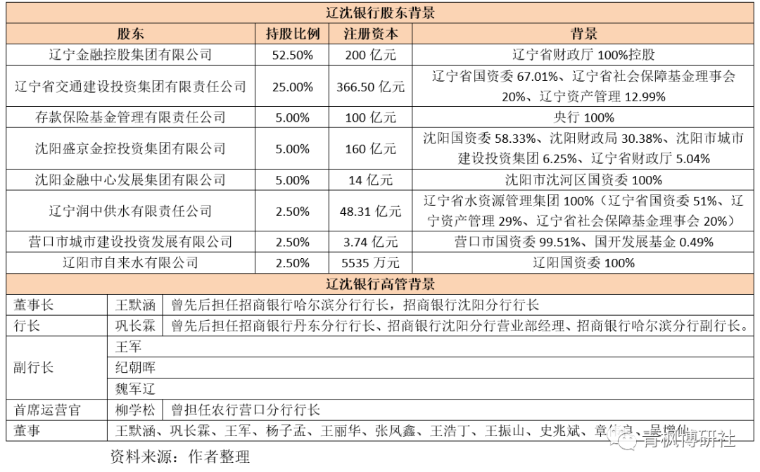 4、新發(fā)起設(shè)立的遼沈銀行注冊(cè)資本為200億元人民幣,注冊(cè)地址為沈陽(yáng),其股東背景主要為沈陽(yáng)國(guó)資委、沈陽(yáng)財(cái)政局、營(yíng)口國(guó)資委、遼陽(yáng)國(guó)資委等,因此遼沈銀行整體是被定位為省級(jí)城商行的。